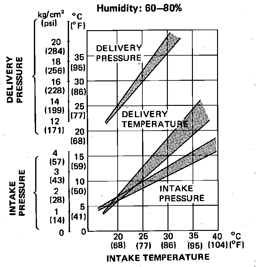 NOTE: Performance test must be performed when humidity is 60 to 80%. If below 50%, the temperature and pressure readings will be lower than the range listed in Fig. 14. If above 80%, readings will be higher.