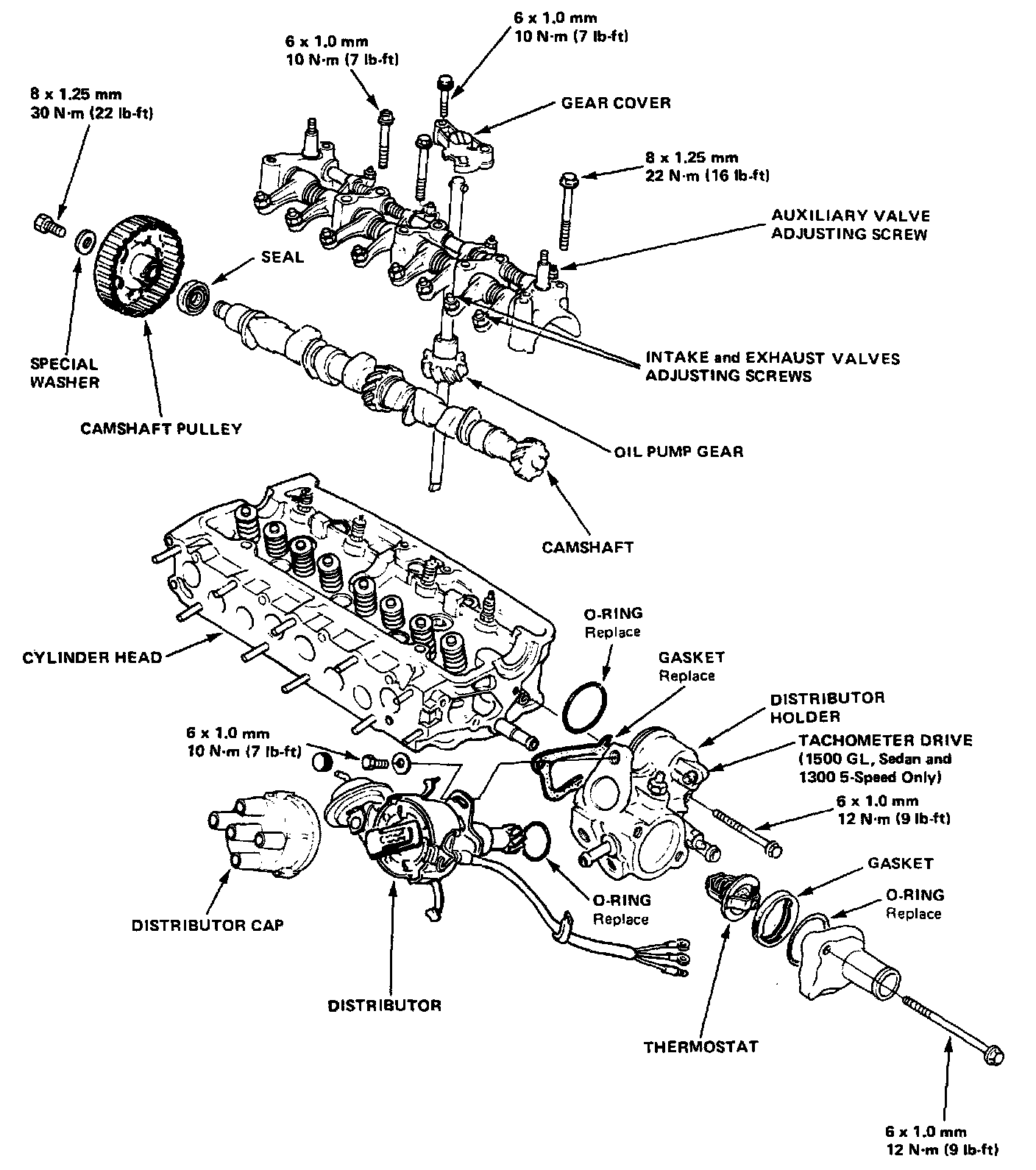Camshaft, Rockers, Distributor And Thermostat Housing: