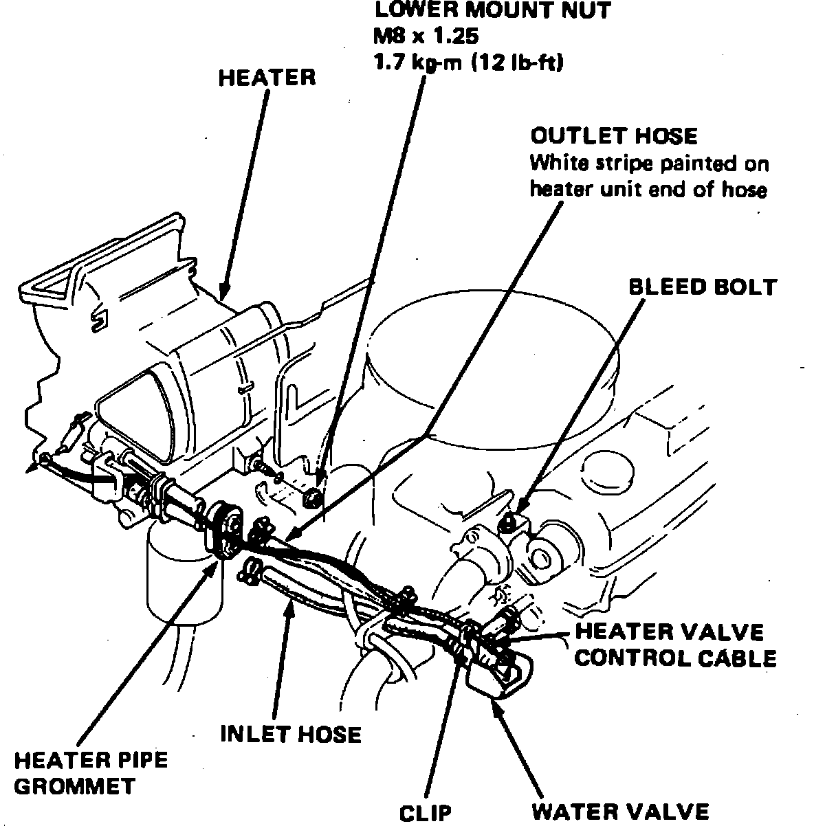 5. Remove heater lower mount nut on firewall.