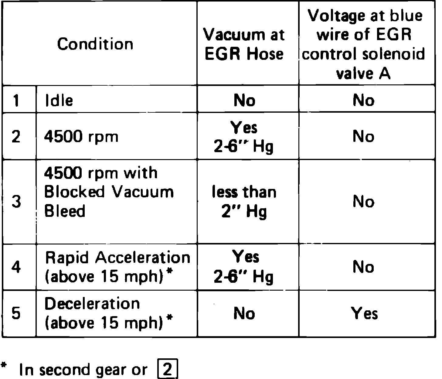 If there is vacuum, check for voltage at EGR control solenoid valve A (box #2, blue wire).