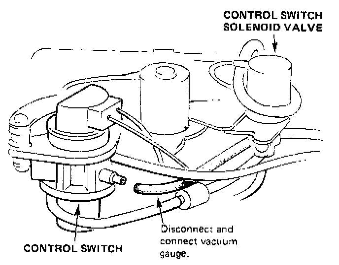 If there is no continuity, disconnect hose from control switch (located in control box #1) and connect vacuum gauge to hose.