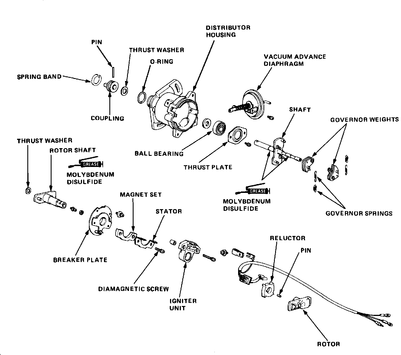 Fig. 46 Hitachi electronic distributor exploded view.: