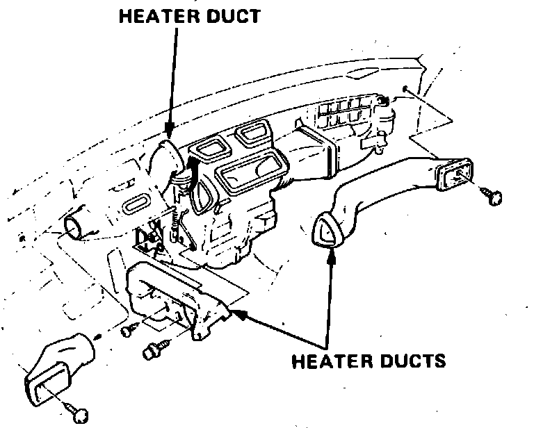 6. Remove dashboard, then the heater ducts, Fig. 21.