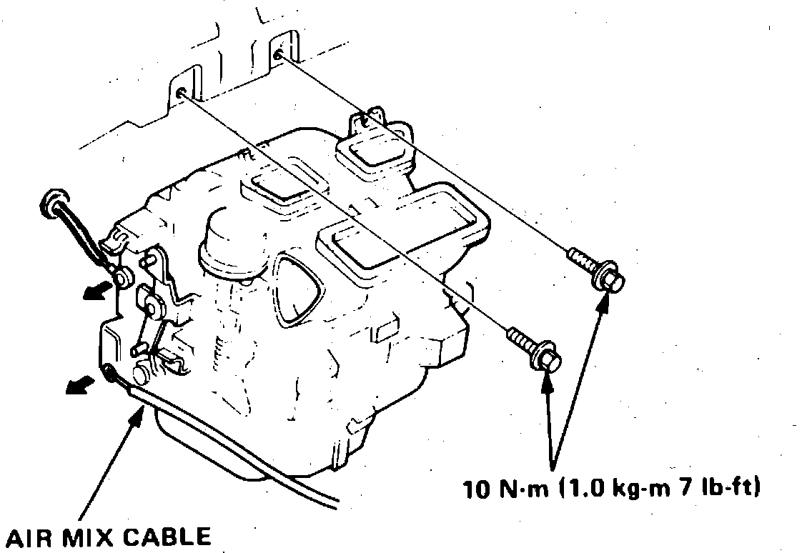 7. Disconnect air mix cable from heater, Fig. 22, then heater sub harness from heater wire harness.