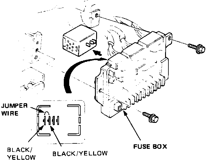 1. Turn ignition switch OFF. Connect a jumper wire between the two Black/Yellow wires at the fuel pump cut-off relay connector.