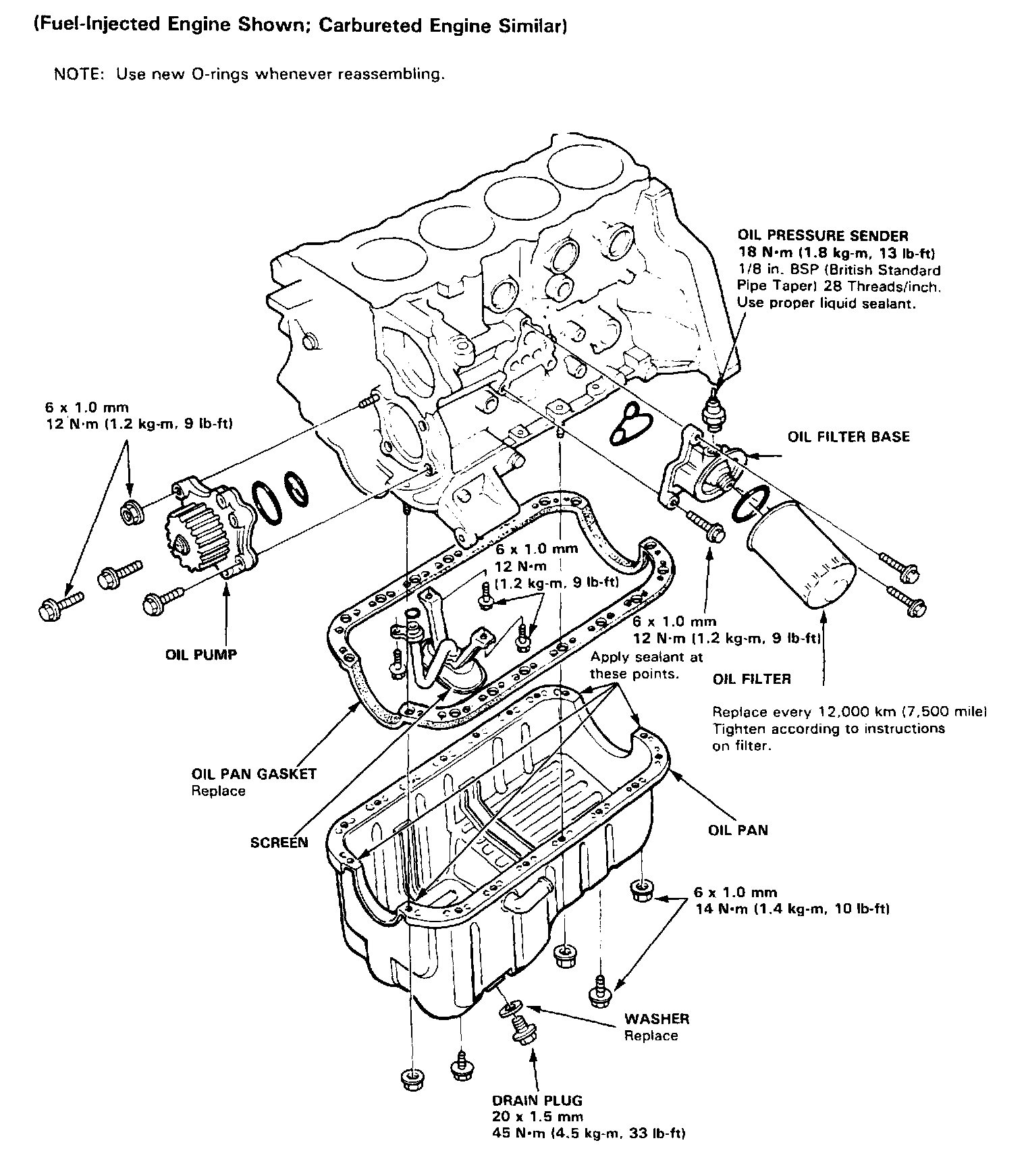 Oil Pan, Drain Plug, Pickup Screen, Oil Pump, Oil Filter Base, Oil Pressure Sender: