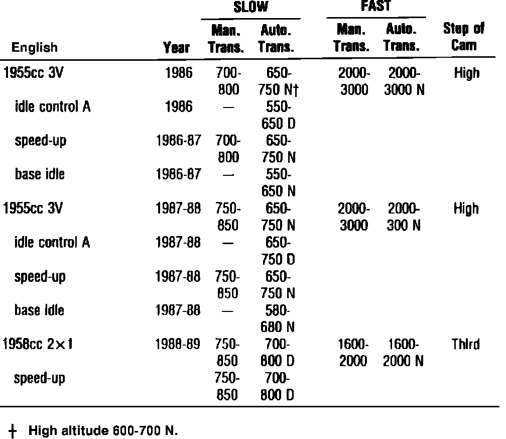 Fig. 011 Idle Speed W/O Computer Control Specifications: