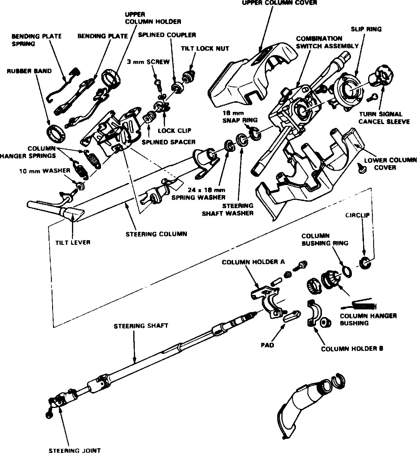 Fig. 3 Steering column exploded view. 1986-87 Accord: