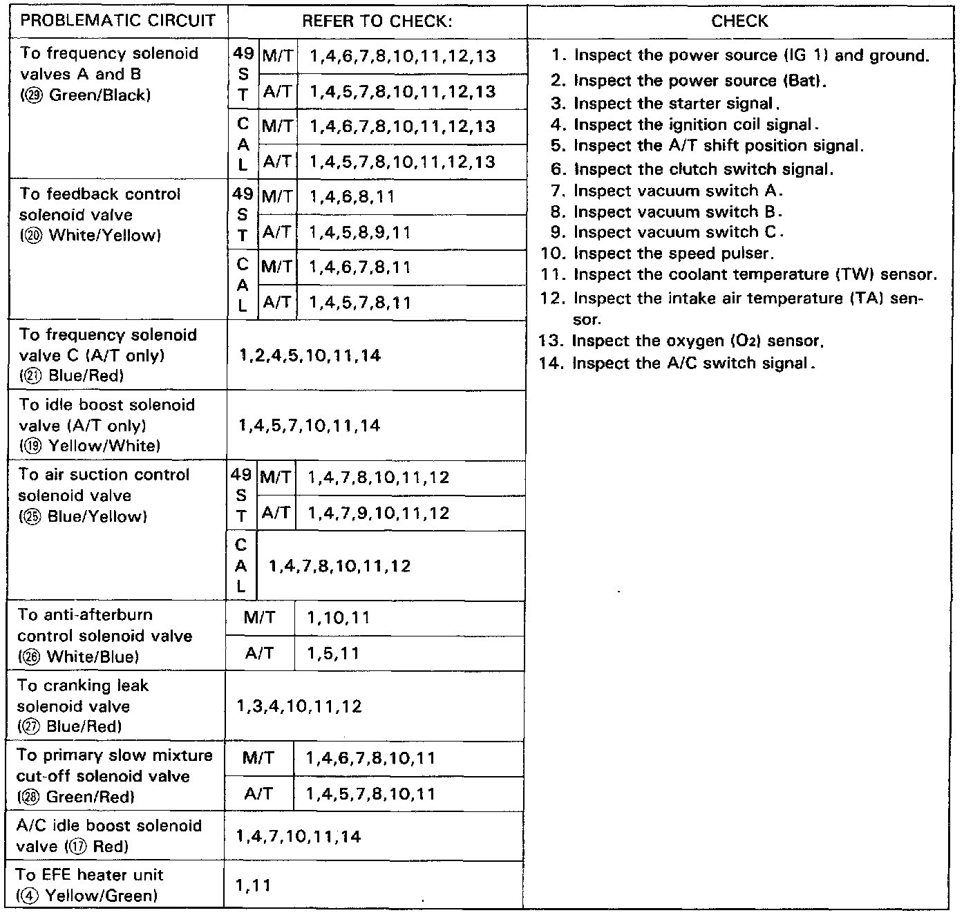 If there is no voltage from the [1][2]control unit when there should be voltage or if there is voltage from the unit when there shouldn't be voltage, inspect as follows and if no defects can be found, replace the control unit and re-test.