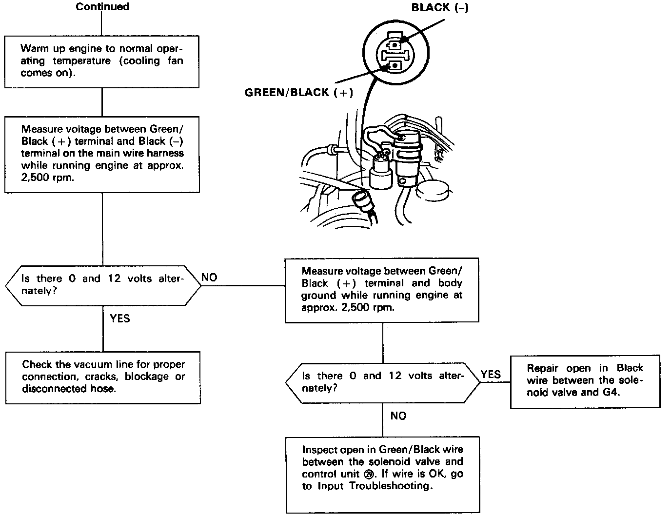 The frequency solenoid valve A, a part of the M-system, gets signals from the oxygen sensor through the
