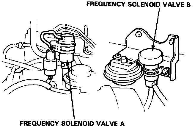 3. Connect # 14 hose to the9ower valve. With the air conditioner off, if so equipped, check that frequency solenoid valves A and B are not operating while idling the engine.