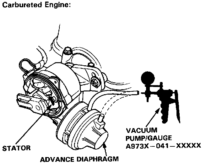 2. Connect a vacuum pump/gauge to advance diaphragm A (inside port).