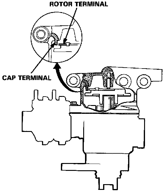 3. Check for rough or pitted rotor and cap terminals.