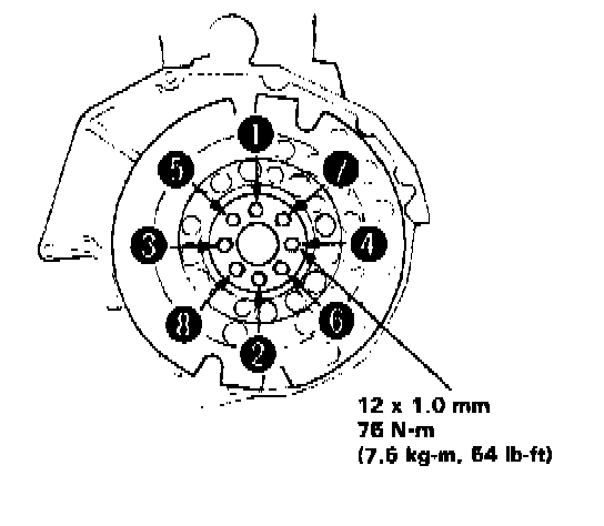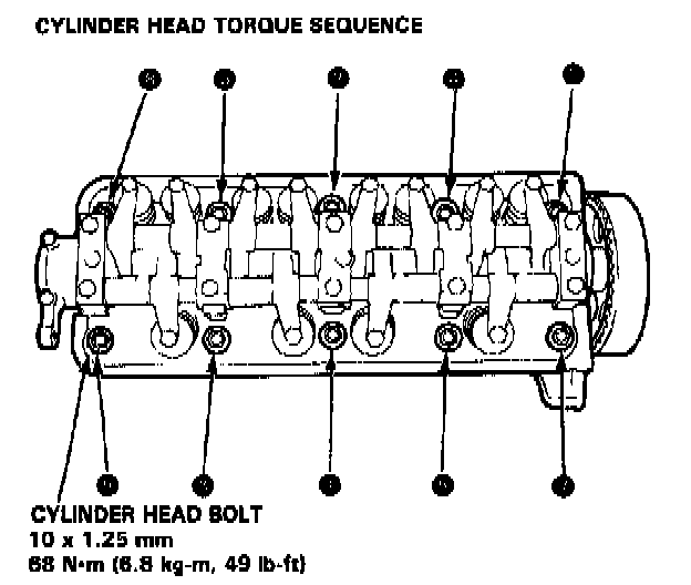 Torque cylinder head bolts in 2 steps, following sequence shown in figure:
