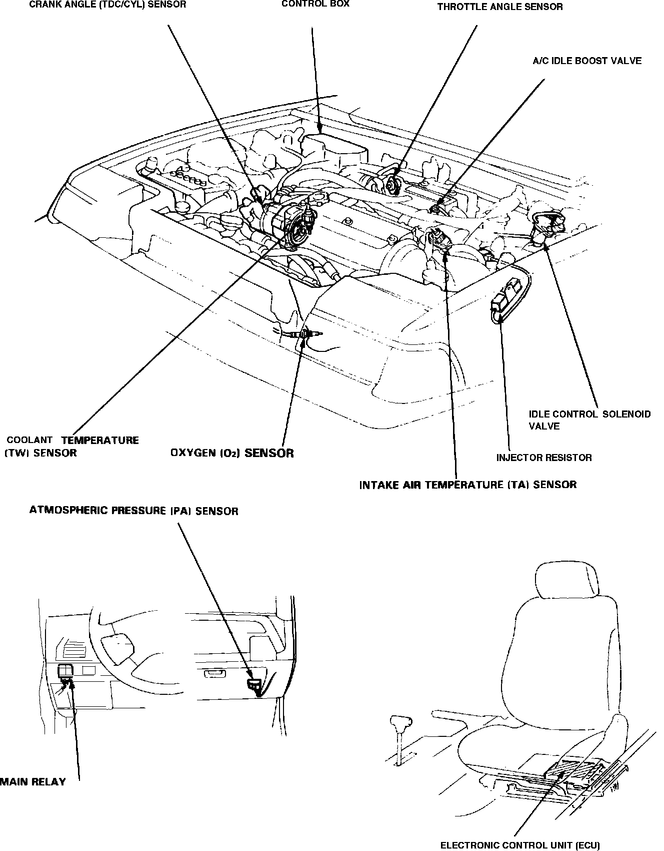 Fig. 28 Engine Compartment Reference Diagram. W/Fuel Injected Engine: