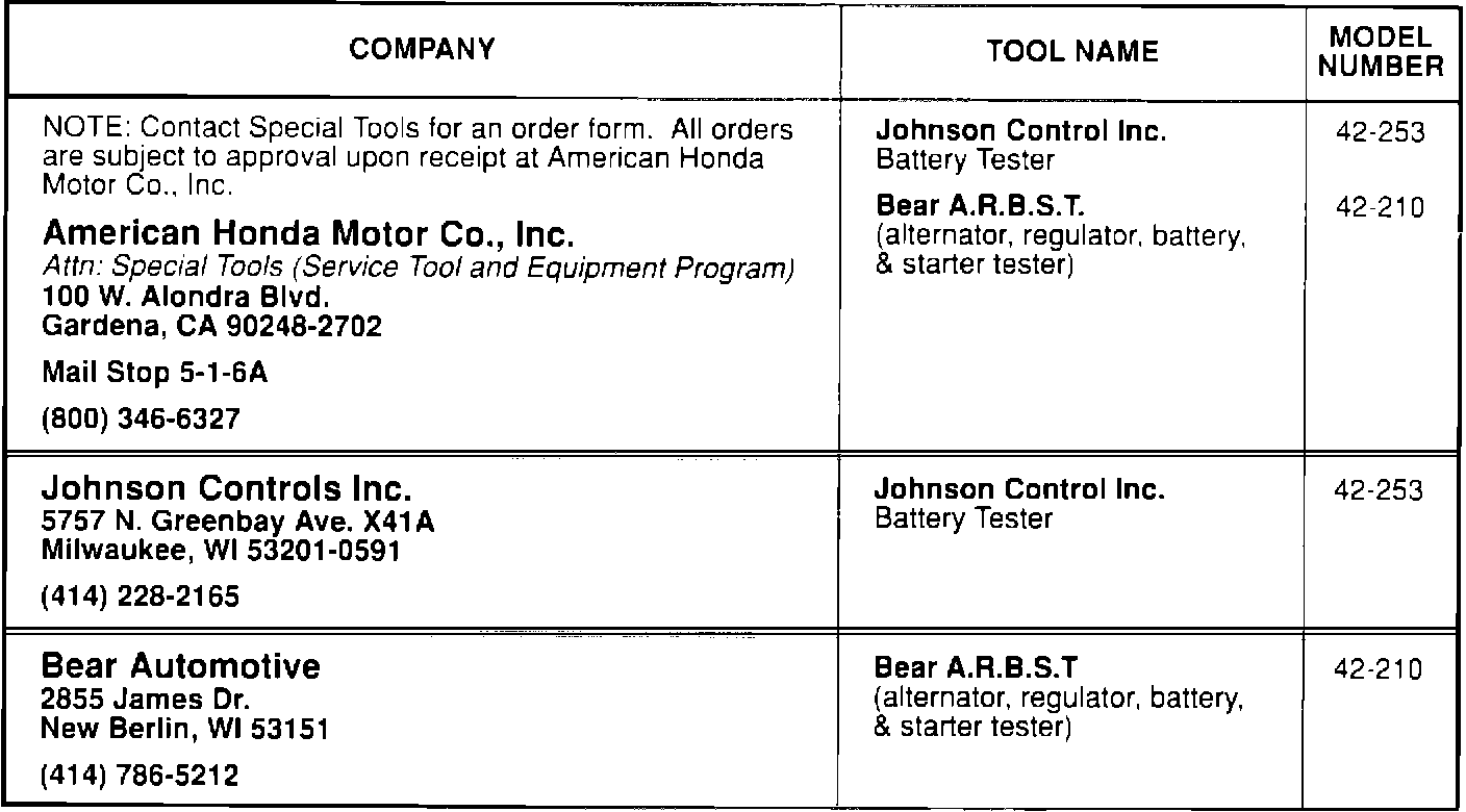 The battery testing equipment listed in this bulletin is required to test batteries in Honda cars (see Section 3.9 of your Automobile Dealer Sales and Service Agreement). Select the tester that will best suit your dealership. Equipment testing capabilities are listed on page two.