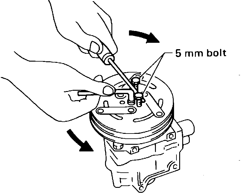 2. Install two 5mm bolts in internal thread holes in armature, then using a screwdriver to secure assembly, remove center bolt using a suitable hex wrench, Fig. 1.