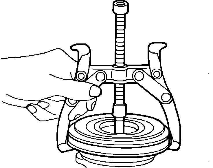 7. Check friction surfaces of the clutch for damage due to excessive heat or excessive grooving due to slippage. If necessary, replace coil, pulley, bearing assembly and clutch hub as a set.