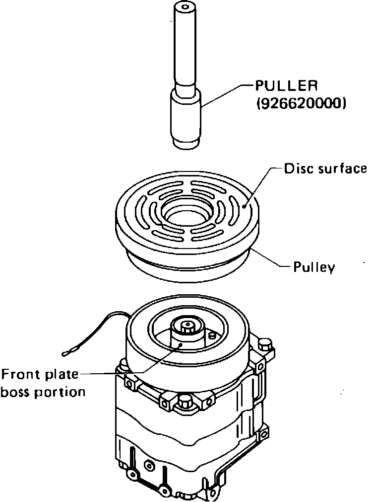 5. Remove compressor pulley using suitable puller, Fig. 2.