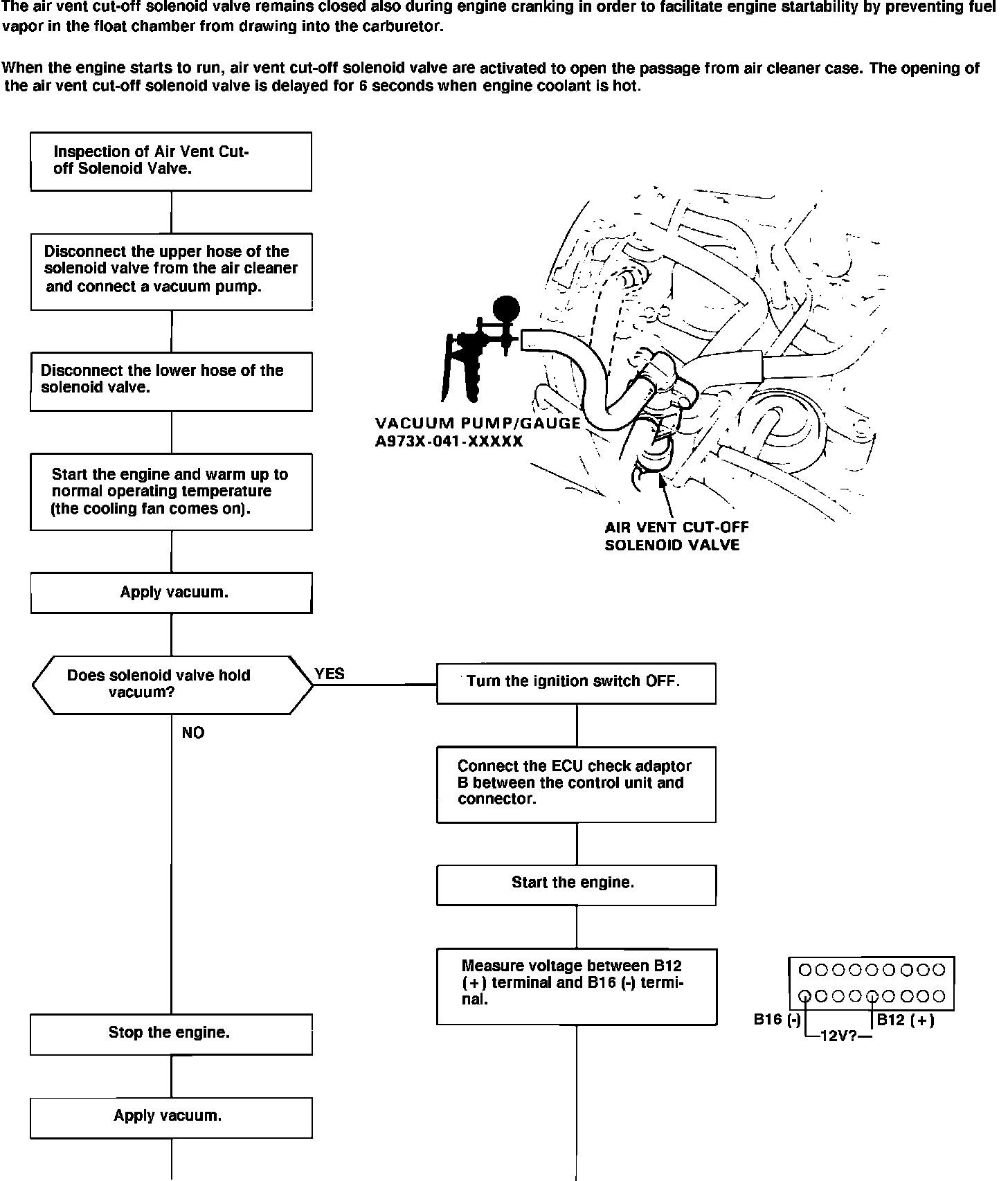 2. Start engine and warm to normal operating temperature, then raise engine speed to 3500 RPM. There should be vacuum.