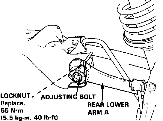 2. Hold adjusting bolt on rear lower arm and loosen locknut, Fig. 8.