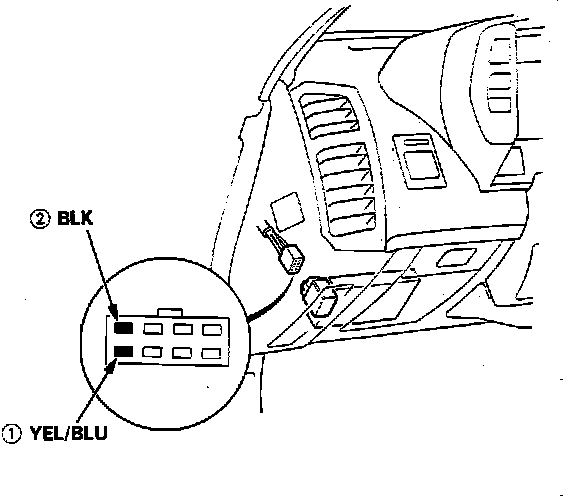 4. Attach the positive probe of the voltmeter to the YELLOW/BLUE wire, pin (1), and the negative probe to the BLACK wire, pin (2).