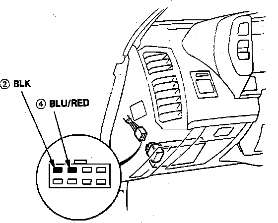 7. Attach the positive probe of the voltmeter to the BLUE/RED wire, pin (4), and the negative probe to the BLACK wire, pin (2).
