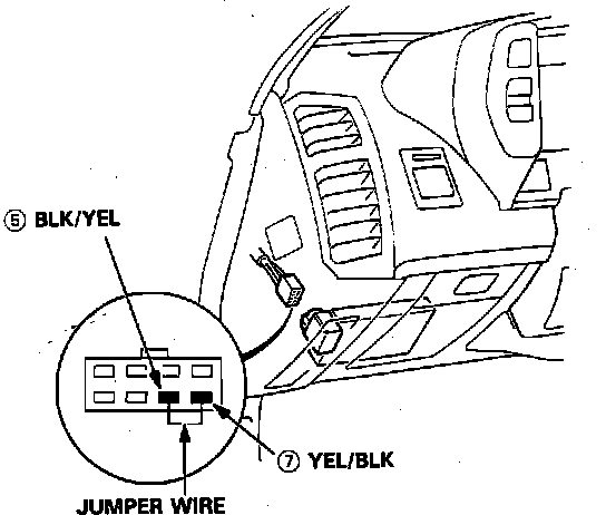 9. Connect a jumper wire between the BLACK/YELLOW wire, pin 5, and the YELLOW/BLACK wire, pin 7.