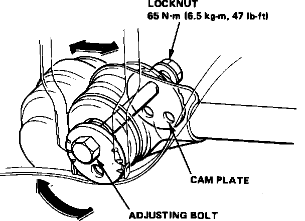 2. Loosen locknut in rear radius arm pivot bolt, then turn adjusting bolt, Fig. 7, until toe-in is within specifications.