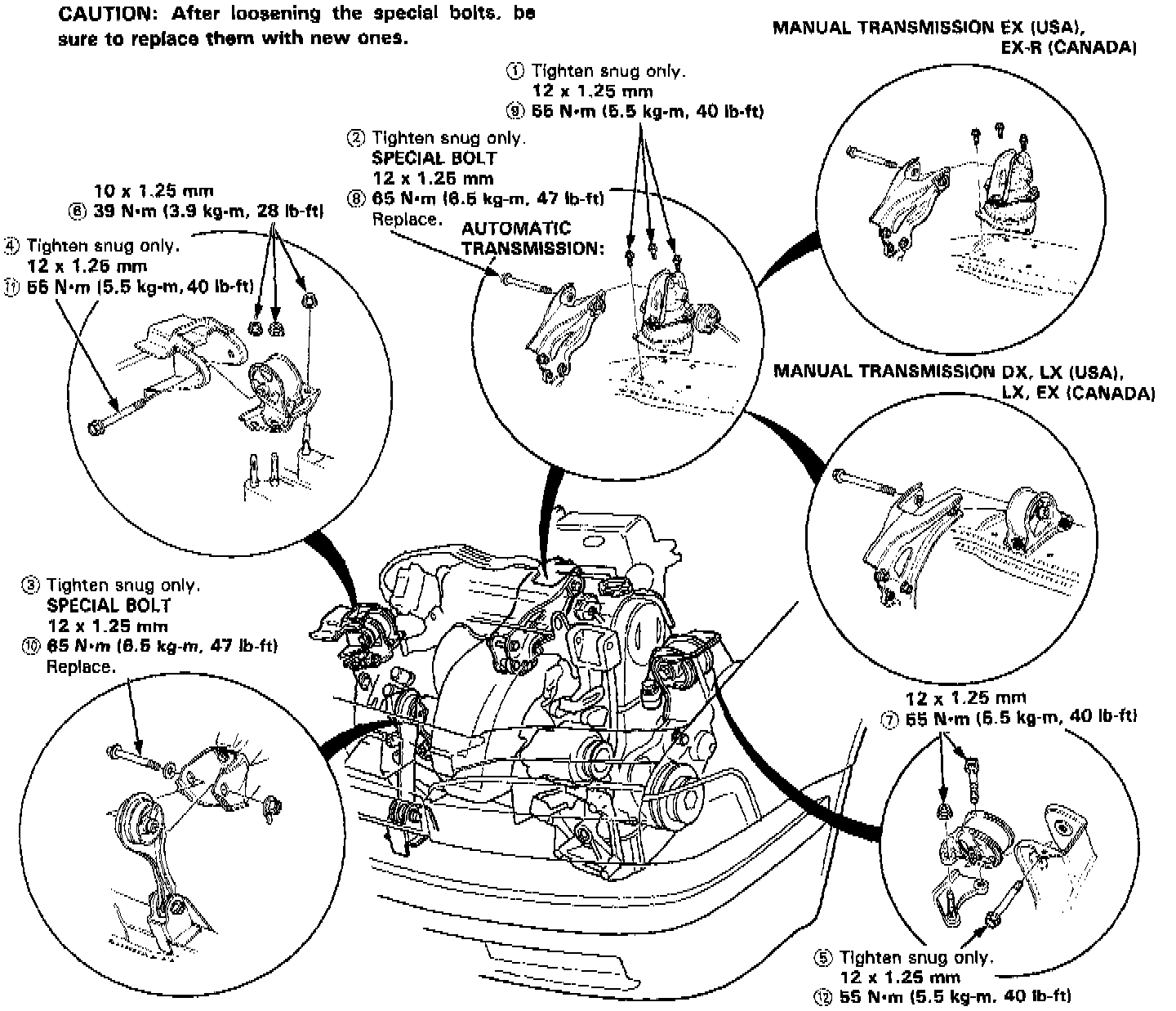 - After loosening the SPECIAL BOLTS, be sure to replace them with new ones.
