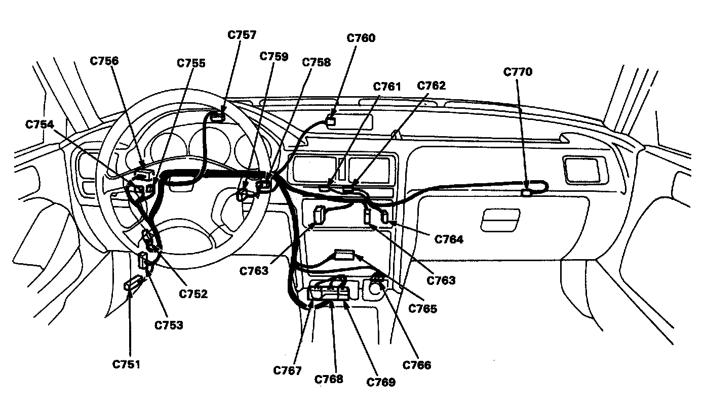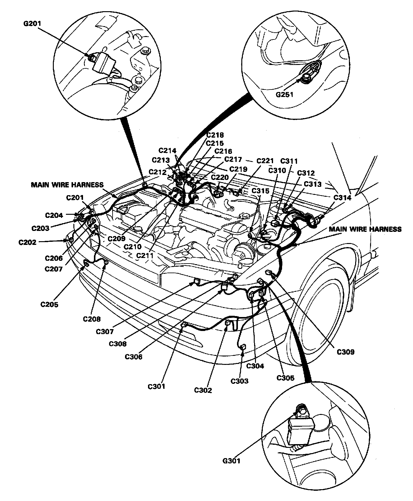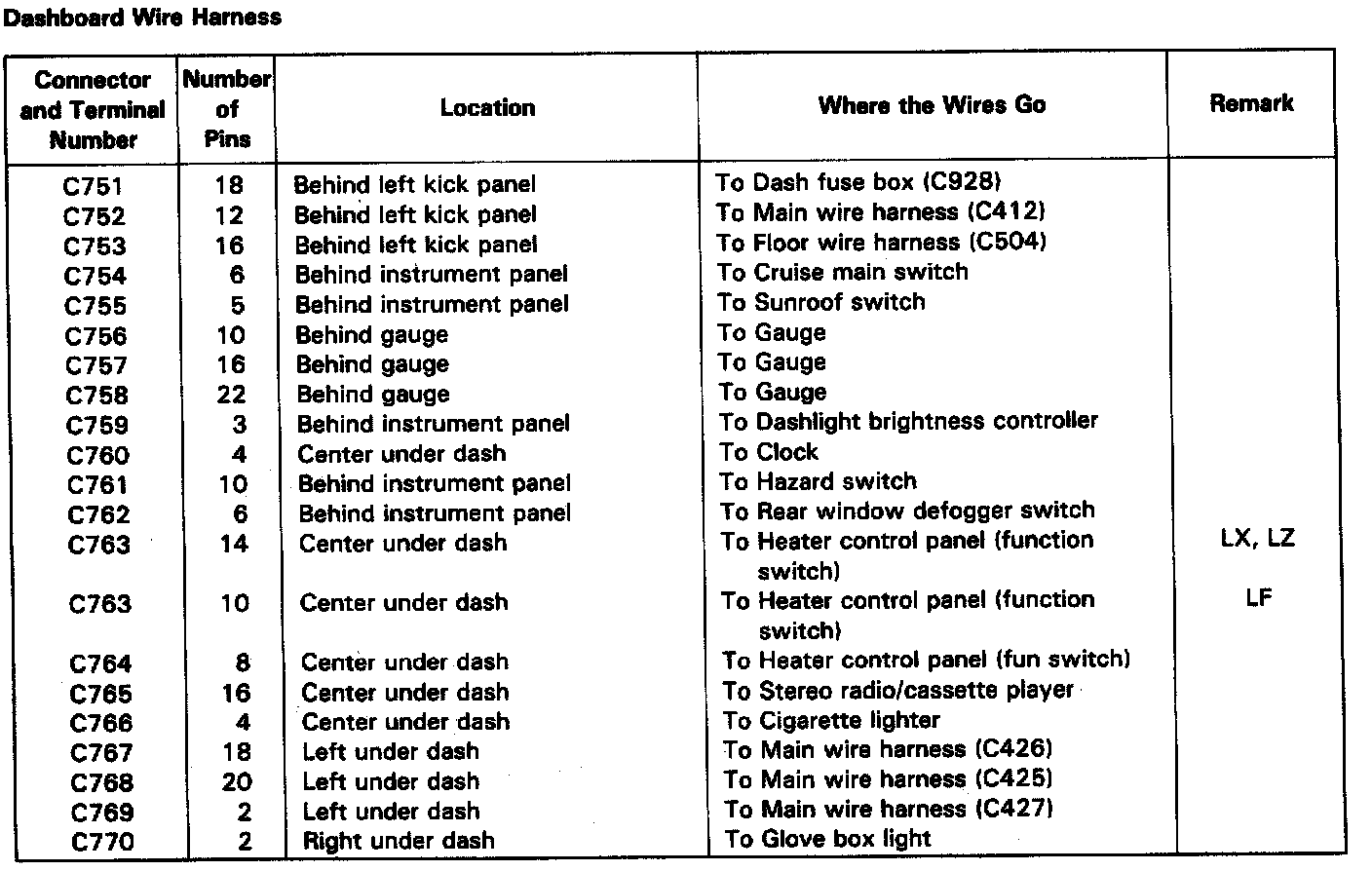 Identifying numbers have been assigned to all connectors. The number is preceded by the letter "C" for connectors, "G" for ground terminals or "T" for non ground terminals.