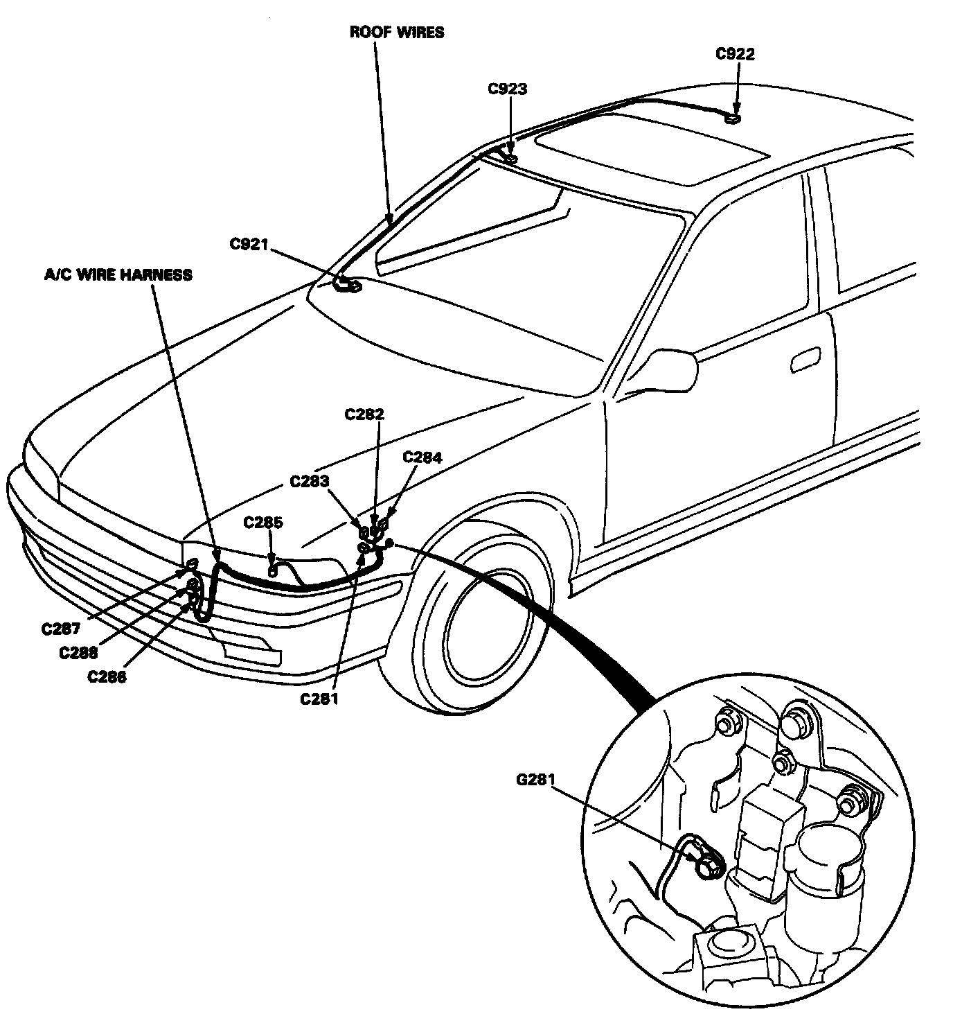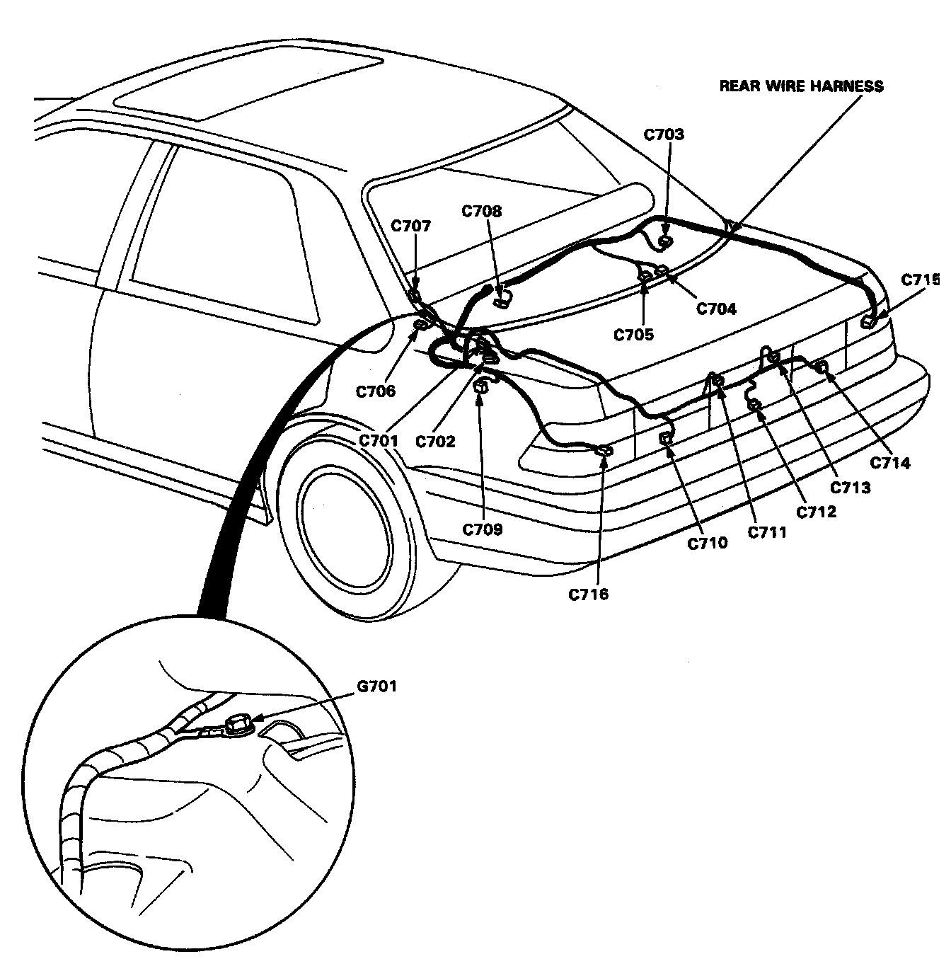 Fuel Tank / Sunroof / Defogger Ground Wires
