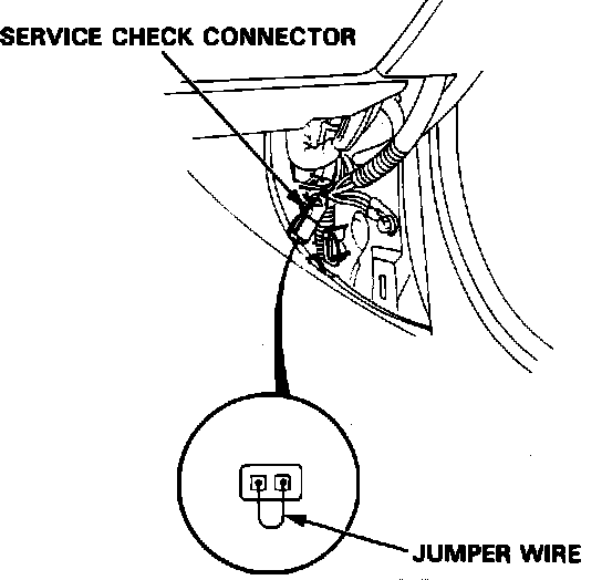 3. Connect the ORN/RED and GRN/WHT terminals of the service connector (BLU) with a jumper wire.