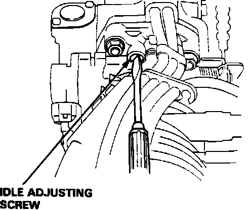Adjust the idle speed, if necessary, by turning the idle adjusting screw.