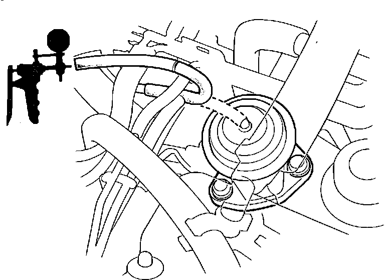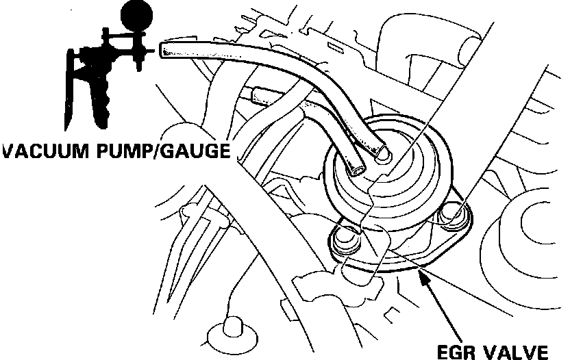 11. Apply 150 mm Hg (6 in. Hg) vacuum to the EGR valve. Vacuum should remain steady and the engine should die.