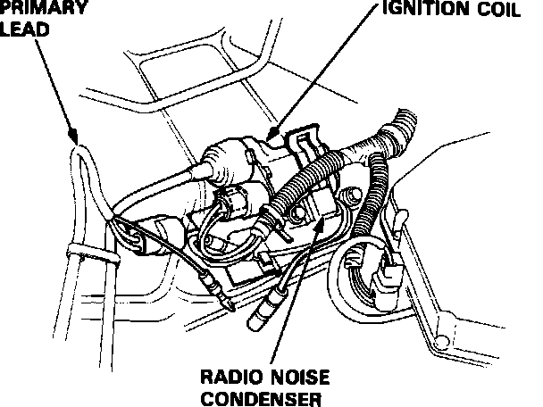 1. Disconnect the radio noise condenser and the ignition coil primary lead.