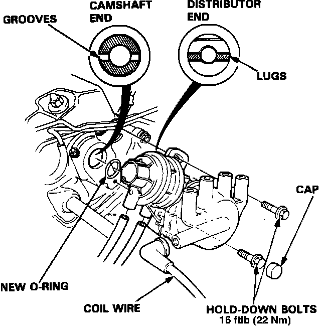 NOTE: Coat a new O ring with engine oil prior to installing the distributor