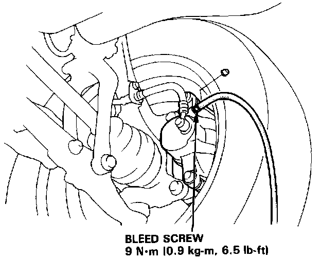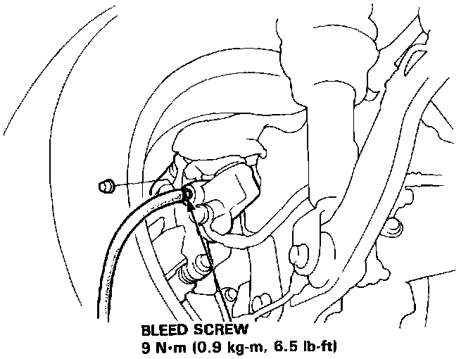 2. Loosen brake bleed screw to allow air to escape from system, then tighten bleed screw securely.