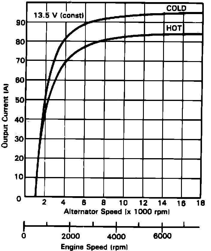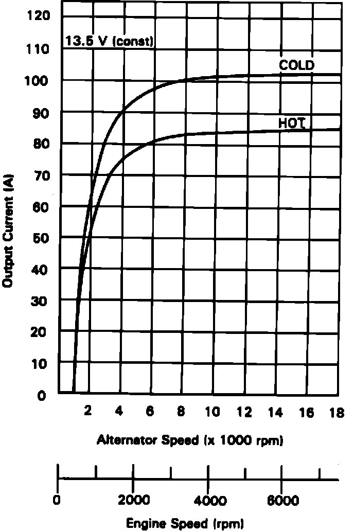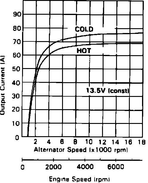 Fig. 5 Alternator Current Output Chart. 1989 Accord: