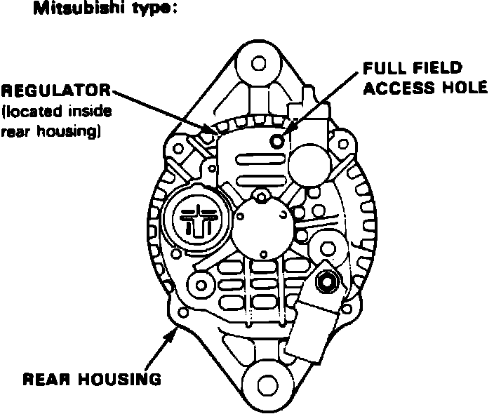 Fig. 8 Alternator Full Field Access Hole Location. Mitsubishi Units: