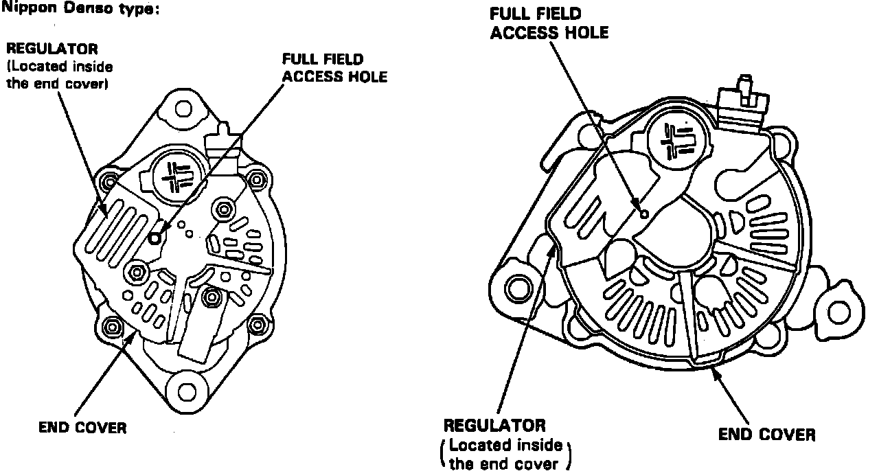 Fig. 9 Alternator Full Field Access Hole Location. Nippon Denso Units: