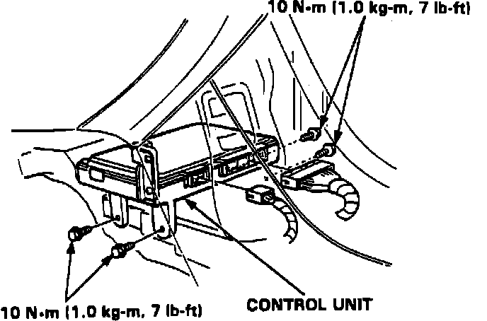 3. Remove control unit mounting bolts, then carefully remove control unit. When control unit mounting bolts are removed, the control unit's memory is cleared.
