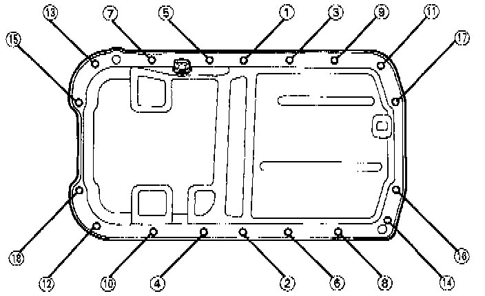 Tighten the nuts and bolts in two steps and torque them in a criss-cross pattern, as shown.
