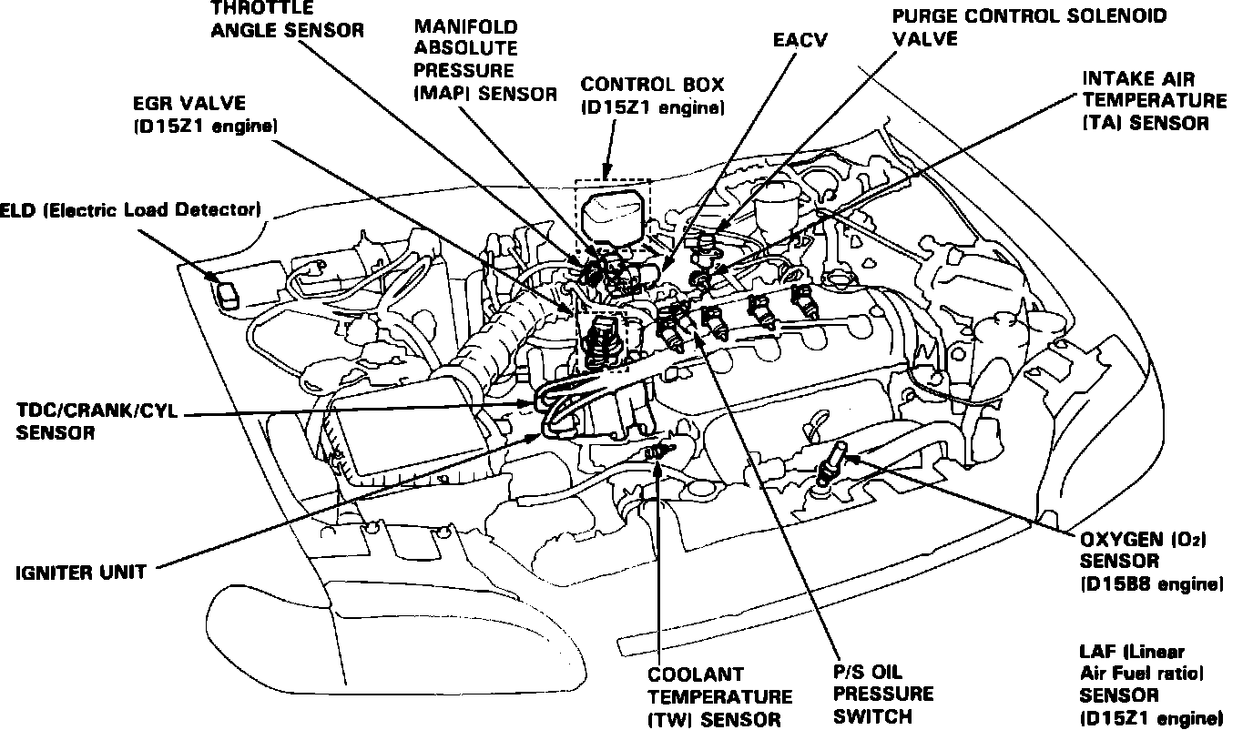 Located on the firewall, center of car. Used only with 16 valve VTEC-E engine.