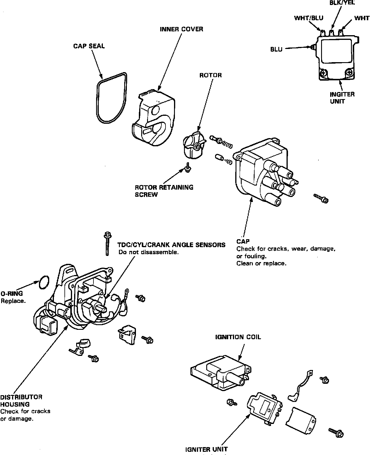 7. Check the distributor cap for cracks, wear and damages. If necessary, clean or replace it.