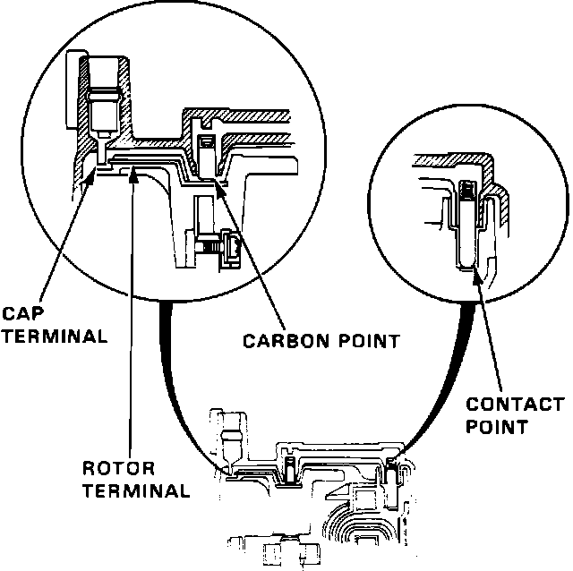 6. Scrape or file off the carbon deposits. Smooth the rotor terminal with an oil stone or #600 sandpaper if rough.