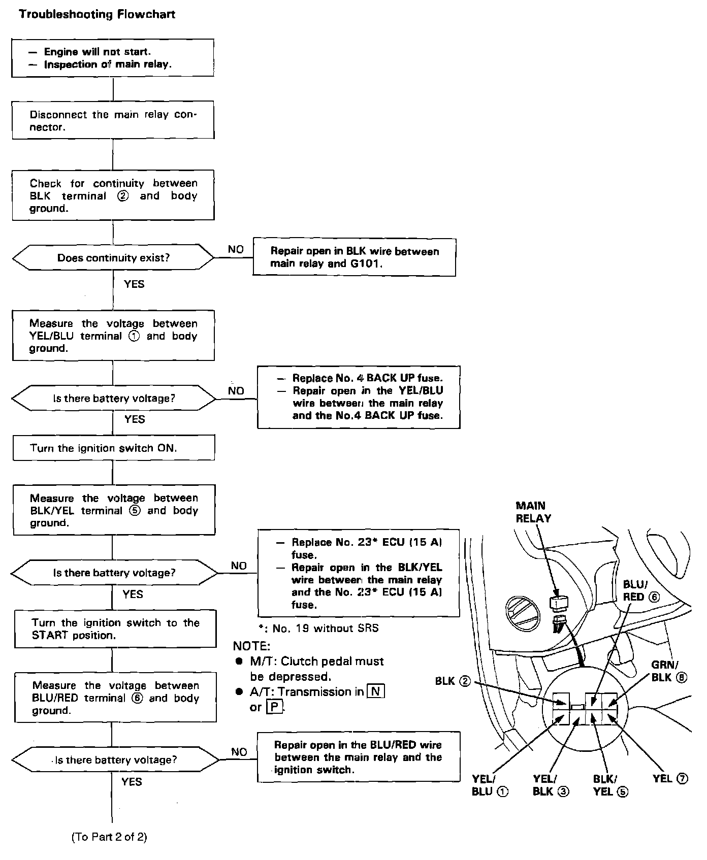Main Relay (Computer/Fuel System): Testing and Inspection