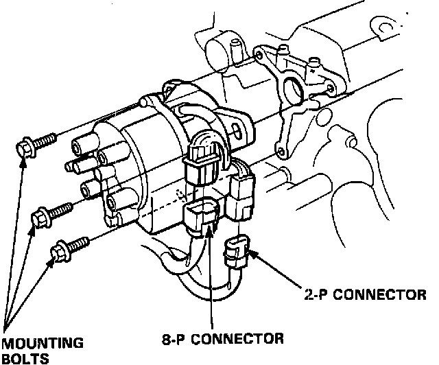 2. Disconnect the 2 pin and 8 pin connectors from the distributor.