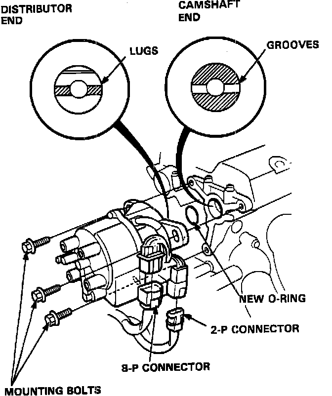 NOTE: Coat a new O ring with engine oil prior to installing the distributor