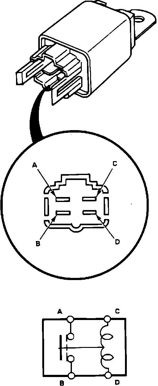 4. Disconnect battery voltage, there should be no continuity between A and B terminals of relay.